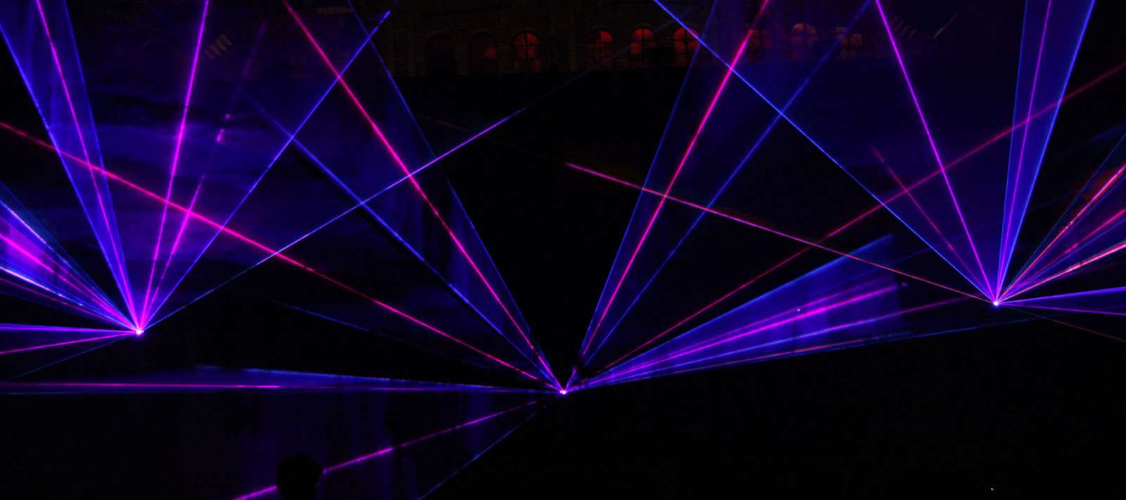 Die zweite Lasershow-Variante ist die Grafikshow. Hierbei werden durch den Laserprojektor Lasergrafiken und Laseranimationen auf einem passenden Projektionsmedium abgebildet. Dies kann eine Leinwand, eine spezielle Lasergaze oder auch die Fassade eines Gebäudes sein. Der Inhalt der Grafikshow kann dabei auf Ihre Anforderungen und Wünsche angepasst oder auch eine komplett neue Show aus Ihrer Geschichte oder Ihrem Storyboard erstellt werden. Die Grafiklasershow ist eine äußerst effektvolle Methode, um Aufmerksamkeit zu erregen, ideal geeignet für Produkpräsentationen und Messeauftritte, für Jubiläumsevents und allen Veranstaltungen, bei denen eine Geschichte auf eine besonders eindrucksvolle Art und Weise erzählt werden soll. Im Gegensatz zur Beamshow ist bei der Grafikshow der Einsatz von Nebel oder Dunst nicht erforderlich.